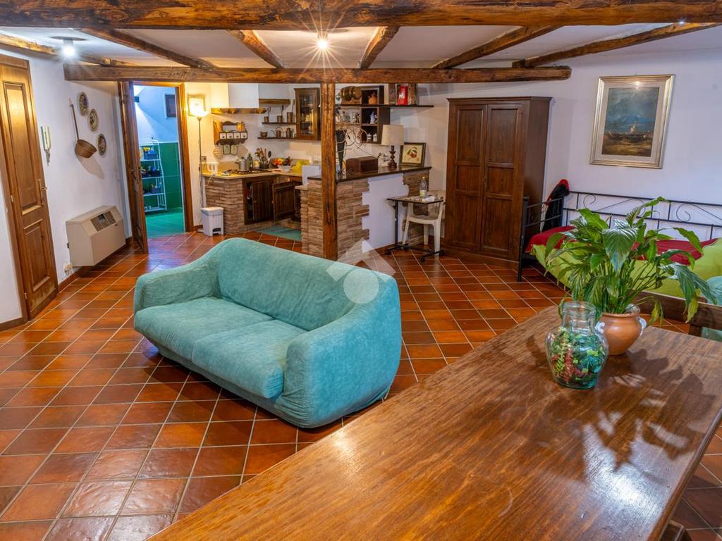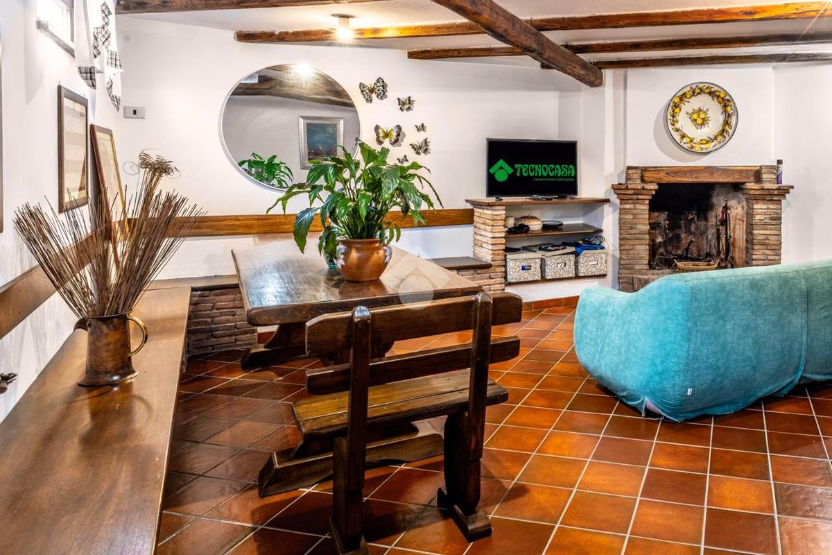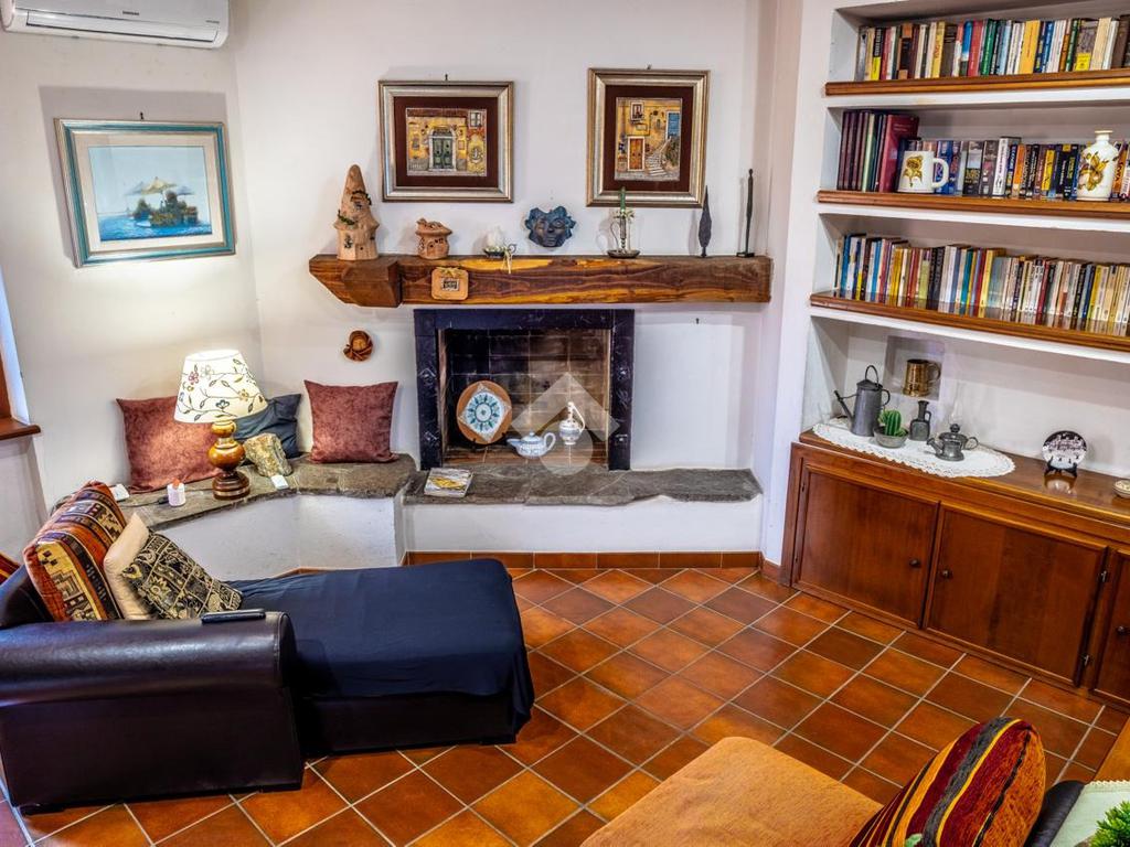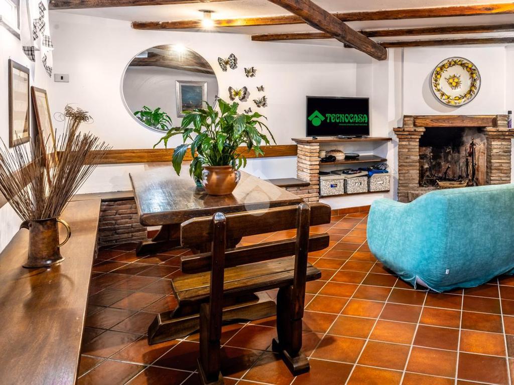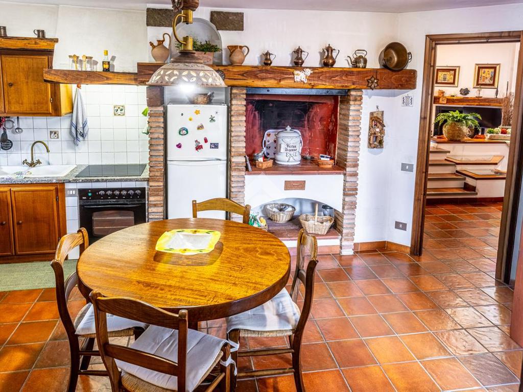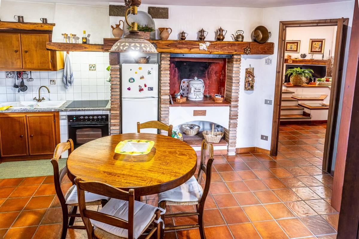 Piano terra: luminoso soggiorno con camino, una camera da letto, cucina abitabile con secondo camino e bagno.