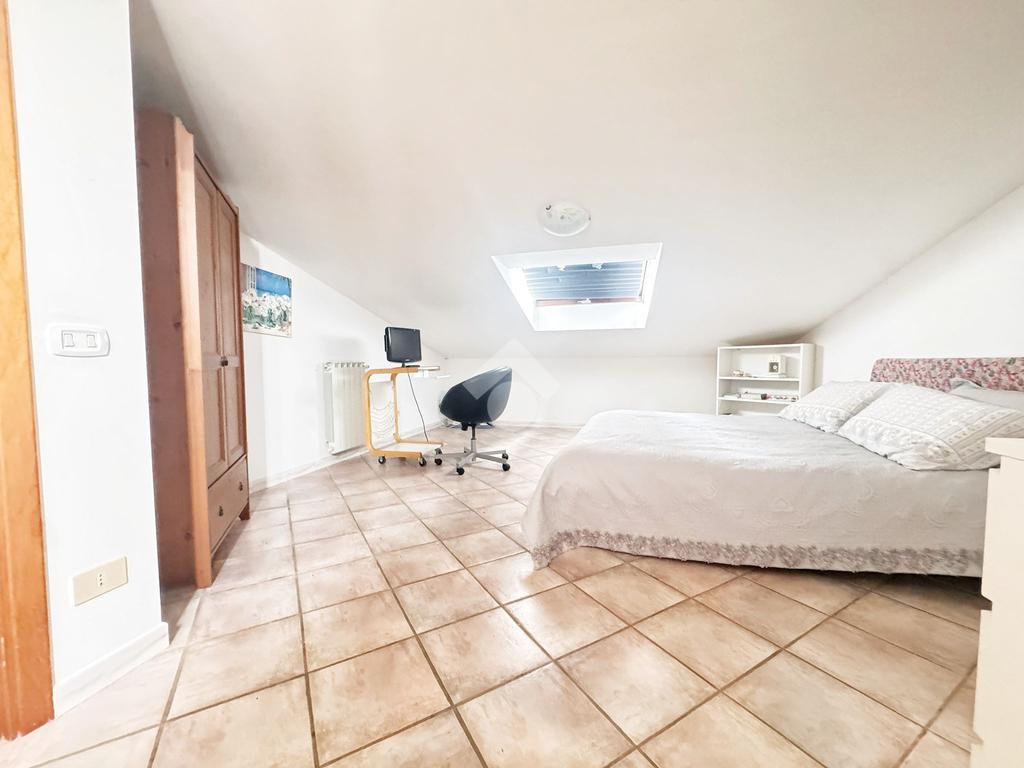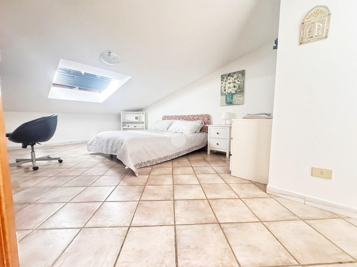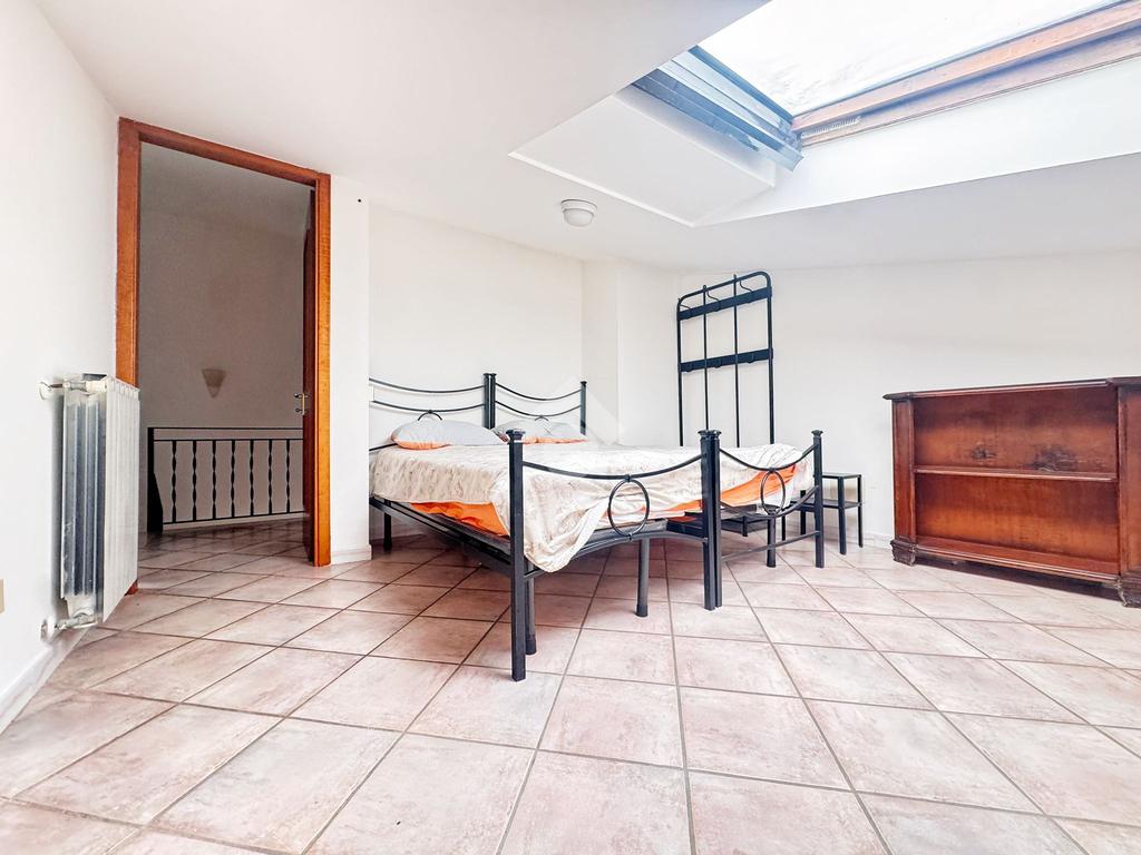 Camera matrimoniale, cameretta e bagno con doccia. Il piano mansardato conferisce un’atmosfera calda e riservata alla zona notte.